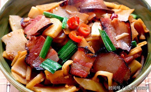 每年腊月间,人们先将猪肉切成条条块块,然后将肉抹上盐,再放进坛子里或木桶中,腌制一个星期后取出风干,然后用柴火熏烤。吃腊肉时,吧腊肉放在锅里烹煮,蒸熟的腊肉,香飘十里,勾人食欲,是土家人平时招待客人摆在席上的主菜。