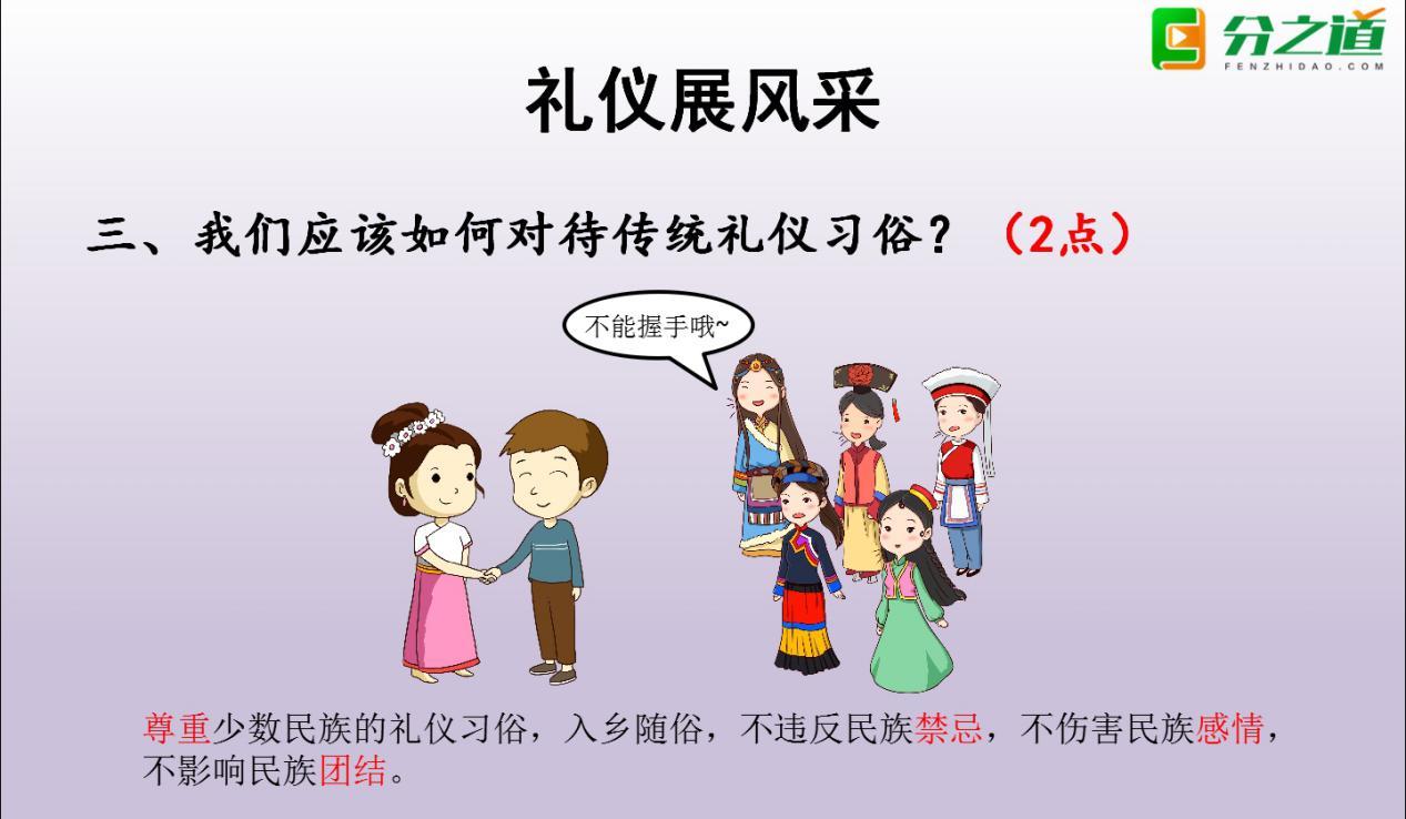 一说到旅游,我们固然开心,但是家长们也开始担心。毕竟年纪小,而且是面对不同的文化,有的同学还是第一次出门,所以,如果是和朋友结伴同行,家长免不了会担心。其实,在初中的思想品德里礼仪展风采的一节里有提到应该怎样对待礼仪习俗,比如,对待各民族的文化做法,往下看: